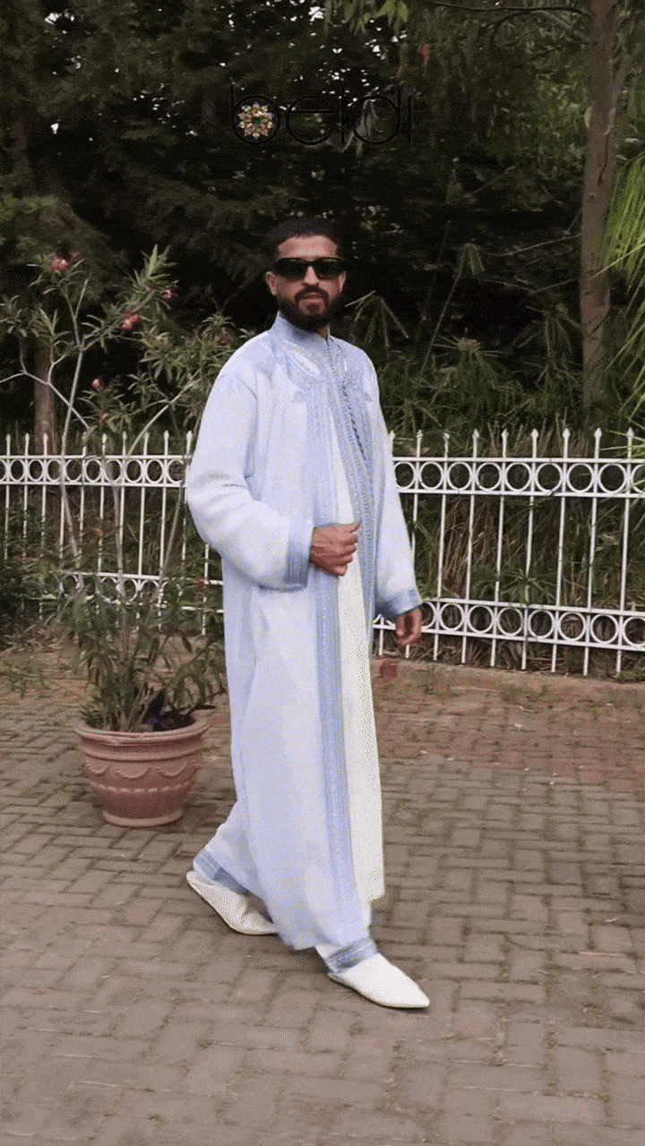 جبادور مغربي رجالي من ثلاث قطع، مخدوم بعناية وبجودة عالية، مخصص للاستعمال اليومي والمناسبات.