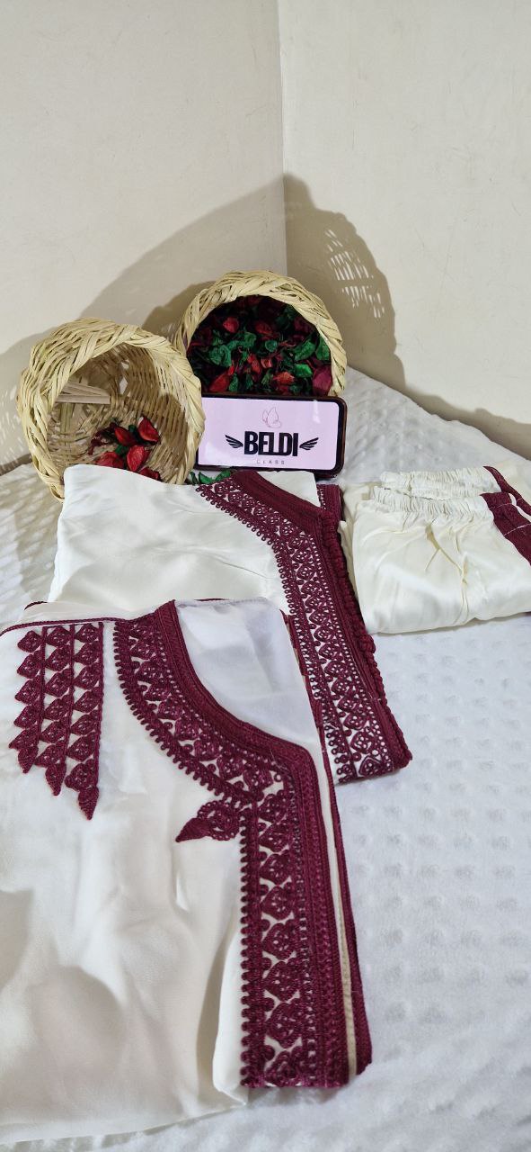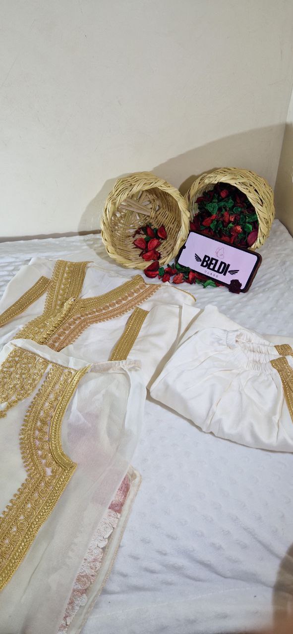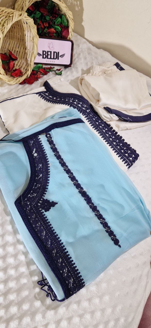 ثلاث قطع متناسقة، قماش مريح، وخياطة نظيفة تعكس جودة اللباس التقليدي كما يجب أن يكون.